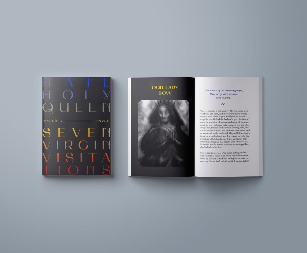 “Hail Holy Queen: Seven Virgin Visitations” is a zine of pleas and prayers, apparitions and visitations, of ladies who are one lady, queen, mother, and woman.